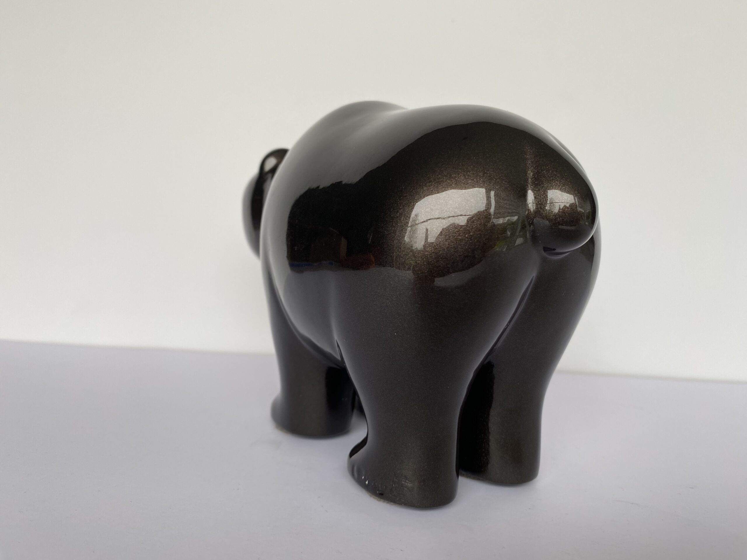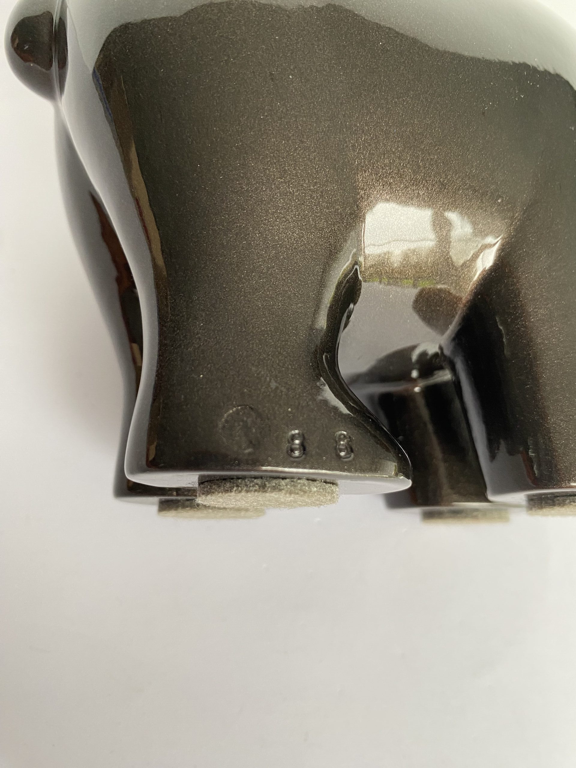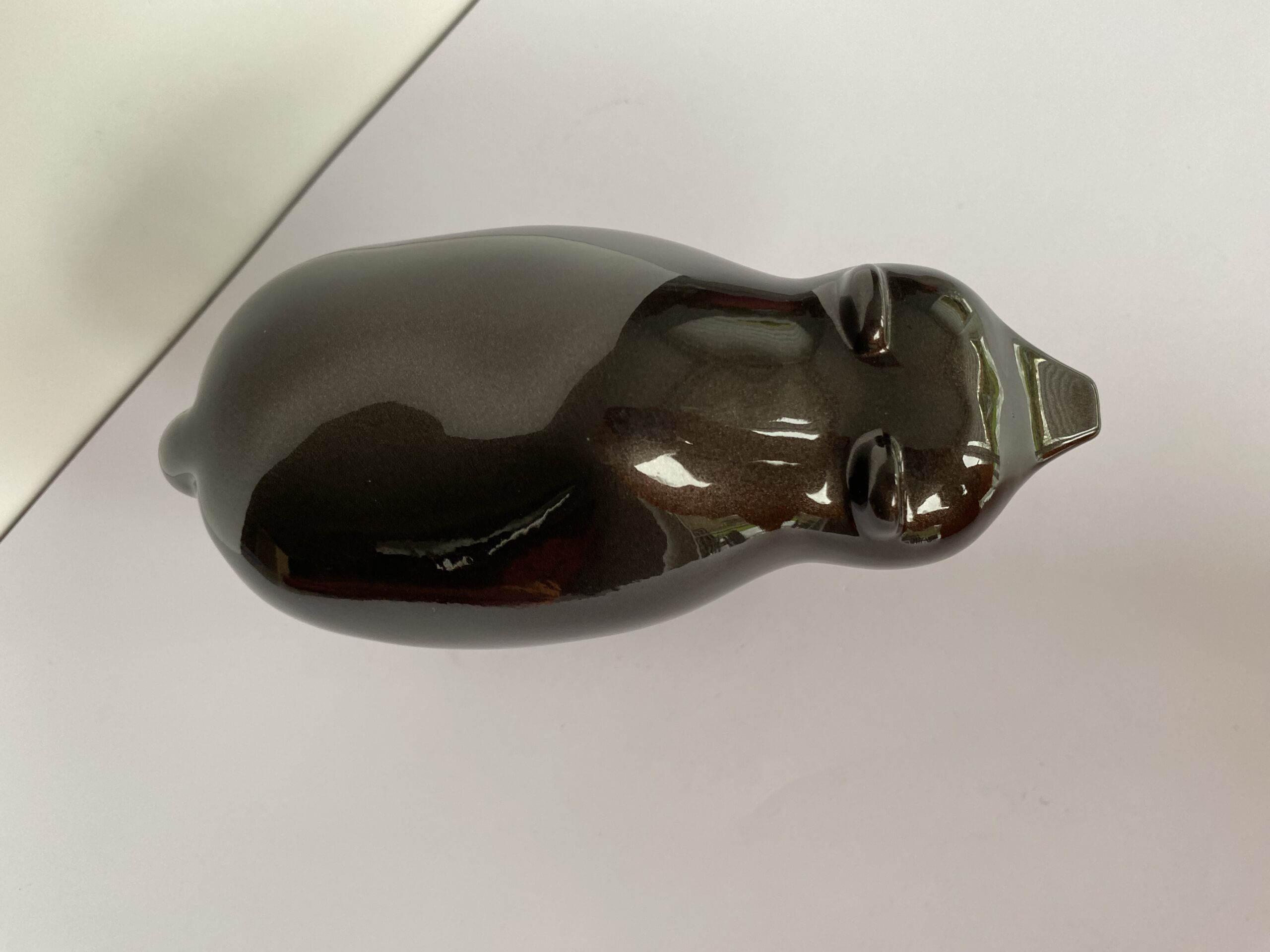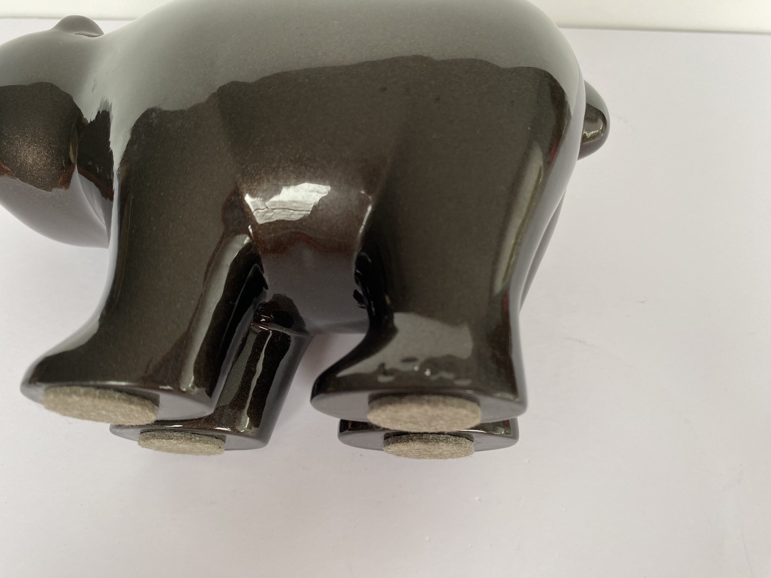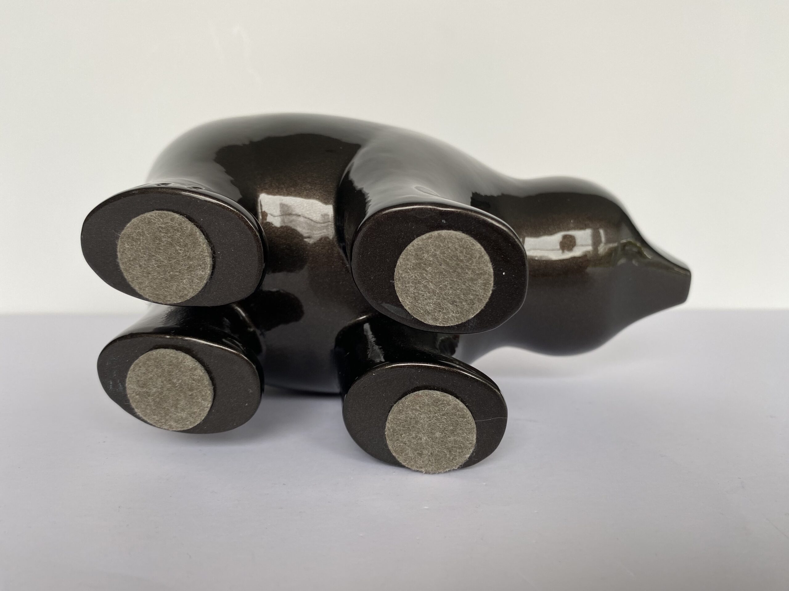 Contemporary sculpture of a bear in brown lacquered bronze. Unique piece, signed Laszlo Tibay, numbered 8/8.