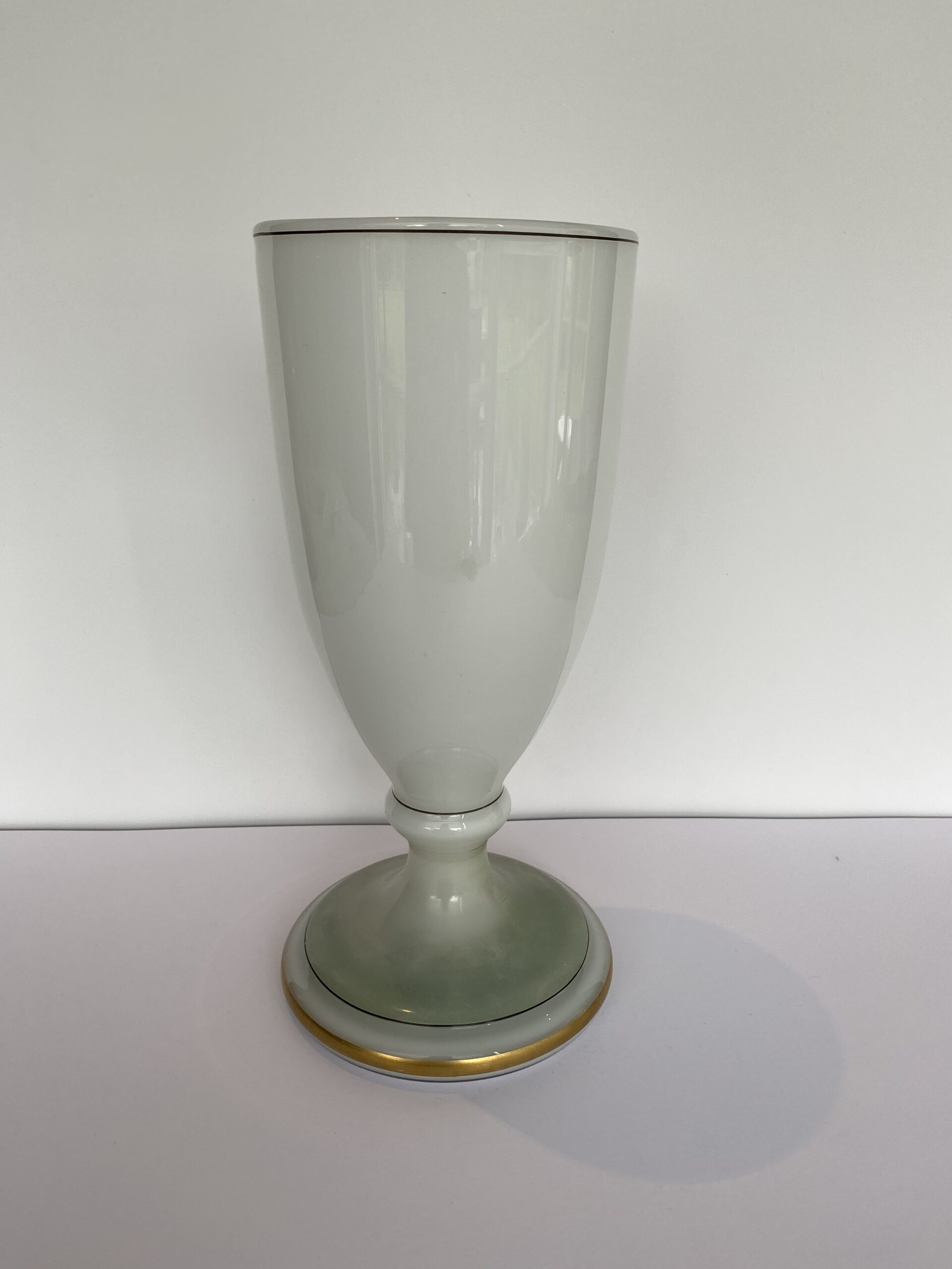 Vase “cup” on shower stand in opaline white crystal from the Val-Saint-Lambert factory (Belgium).