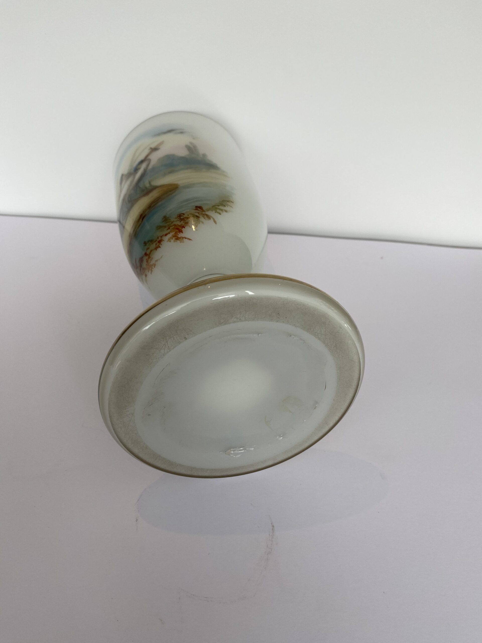 Excellent condition of the vase, discoloration of the paint on the base and erasure of the gilding in certain places related to use.