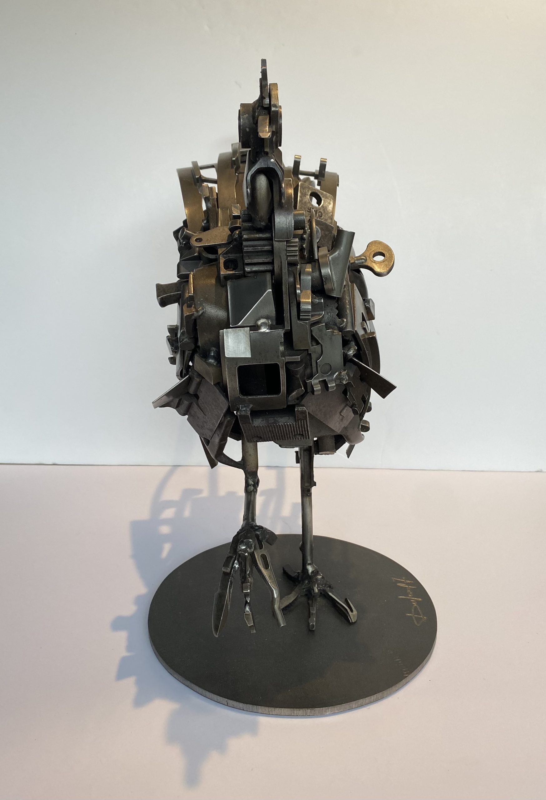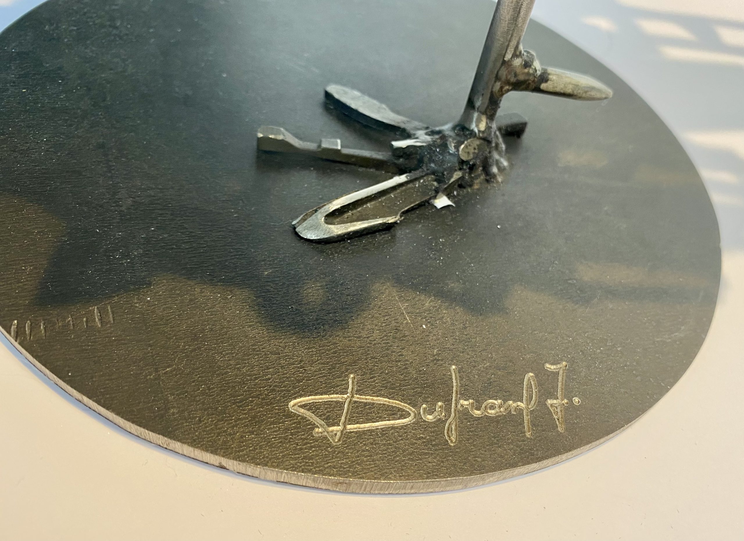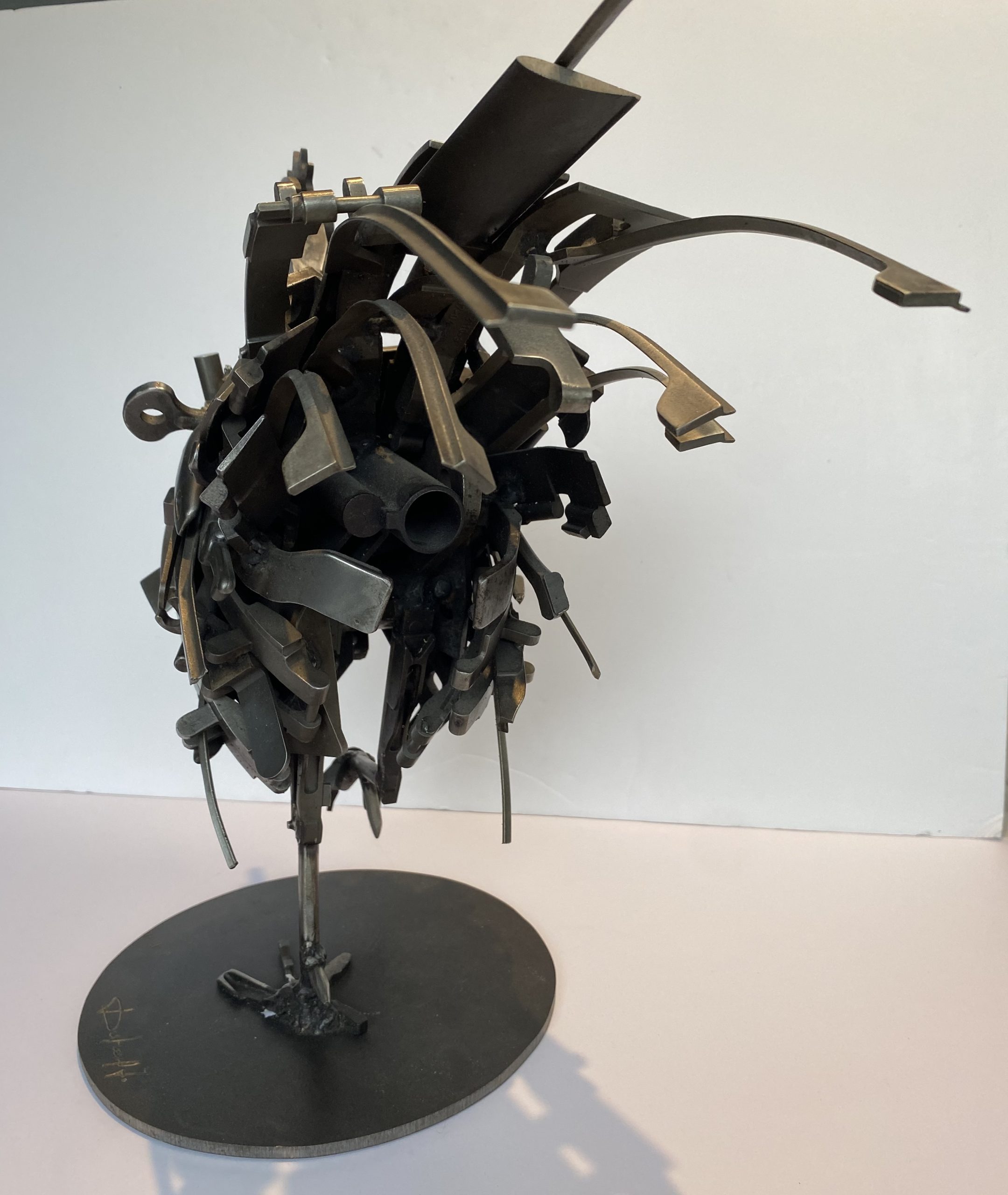 The artist, Jacques Dufrane, is Belgian, born in 1947 in Binche. Passionate about art but initially working as a founder in an industrial environment, Jacques Dufrane draws all his inspiration from this professional experience, both in terms of techniques and patterns. Having become a painter, sculptor and assembler, he uses these small metal pieces, chosen and welded, to create unique creations, which are also like an ode to metallurgy.