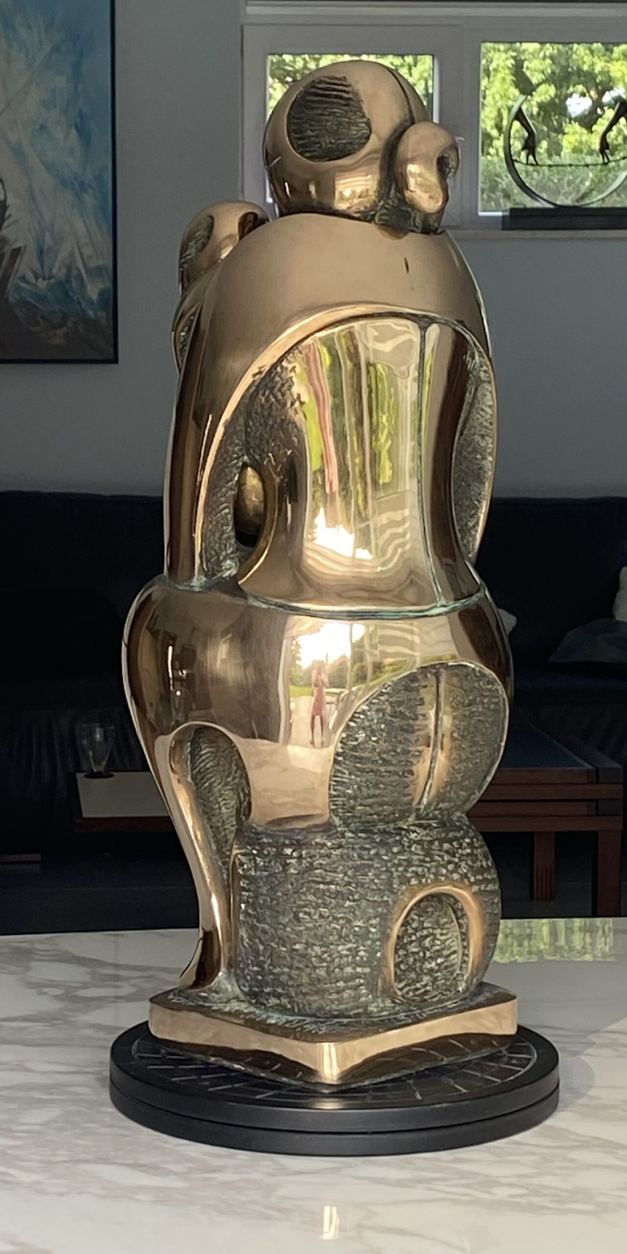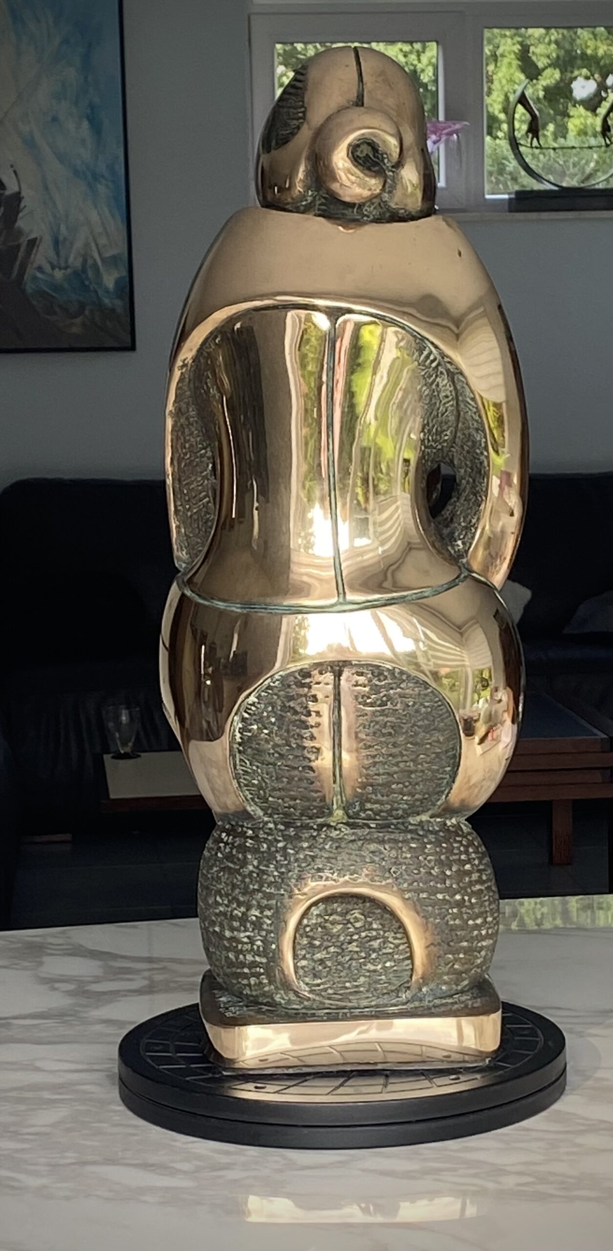 Numbered I/IX. Acquired directly from the artist. Sand casting. Polished bronze alternating with a textured bronze that accentuates the sculpture’s relief.