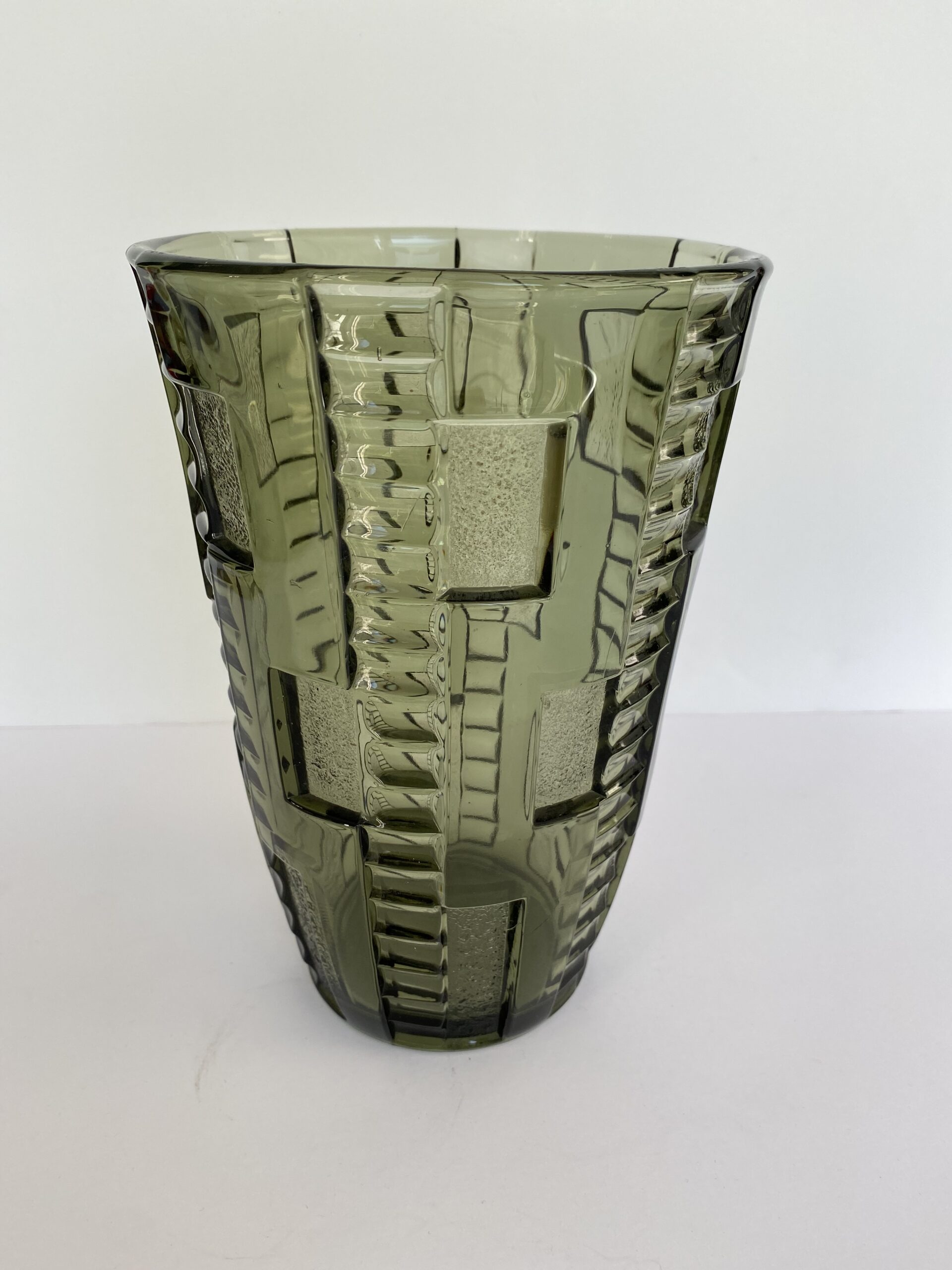 Vase from the Luxval collection by the Val-saint-lambert crystal works, Marceau model, in green.
