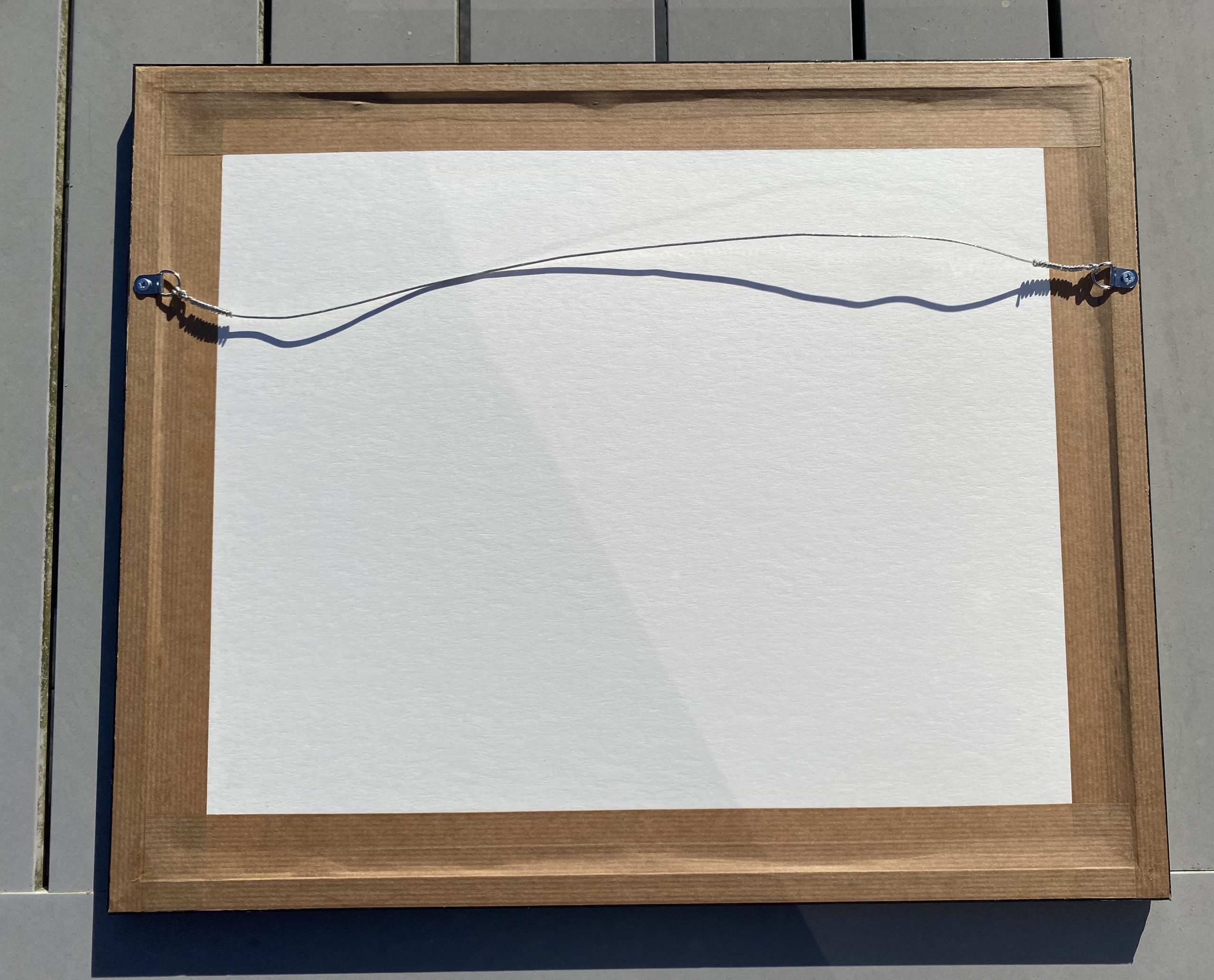 Encadrement argenté avec passe-partout remis à neuf.