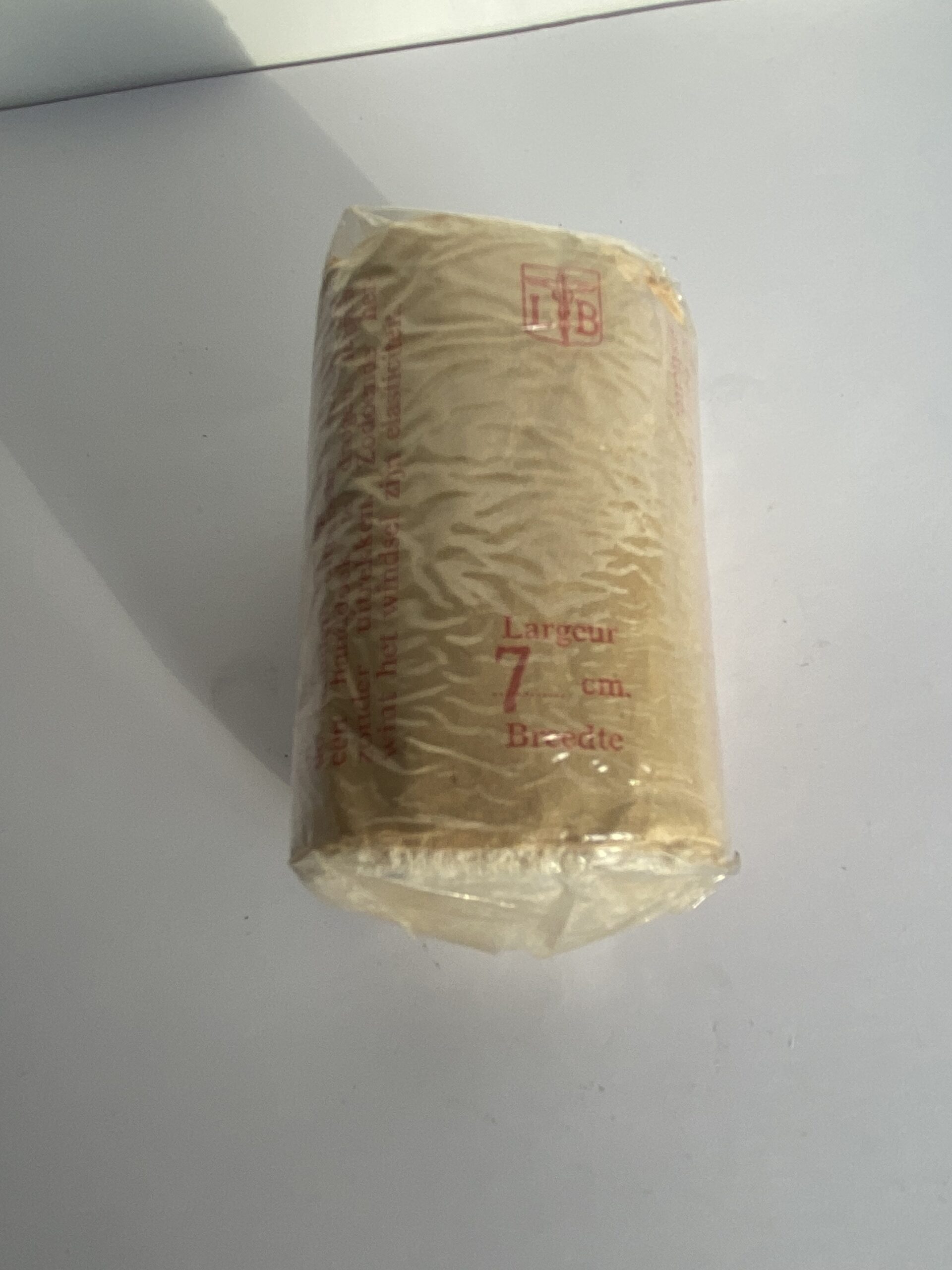 Bande de coton de 7 cm de large avec le mode d’emploi en français et en néerlandais.