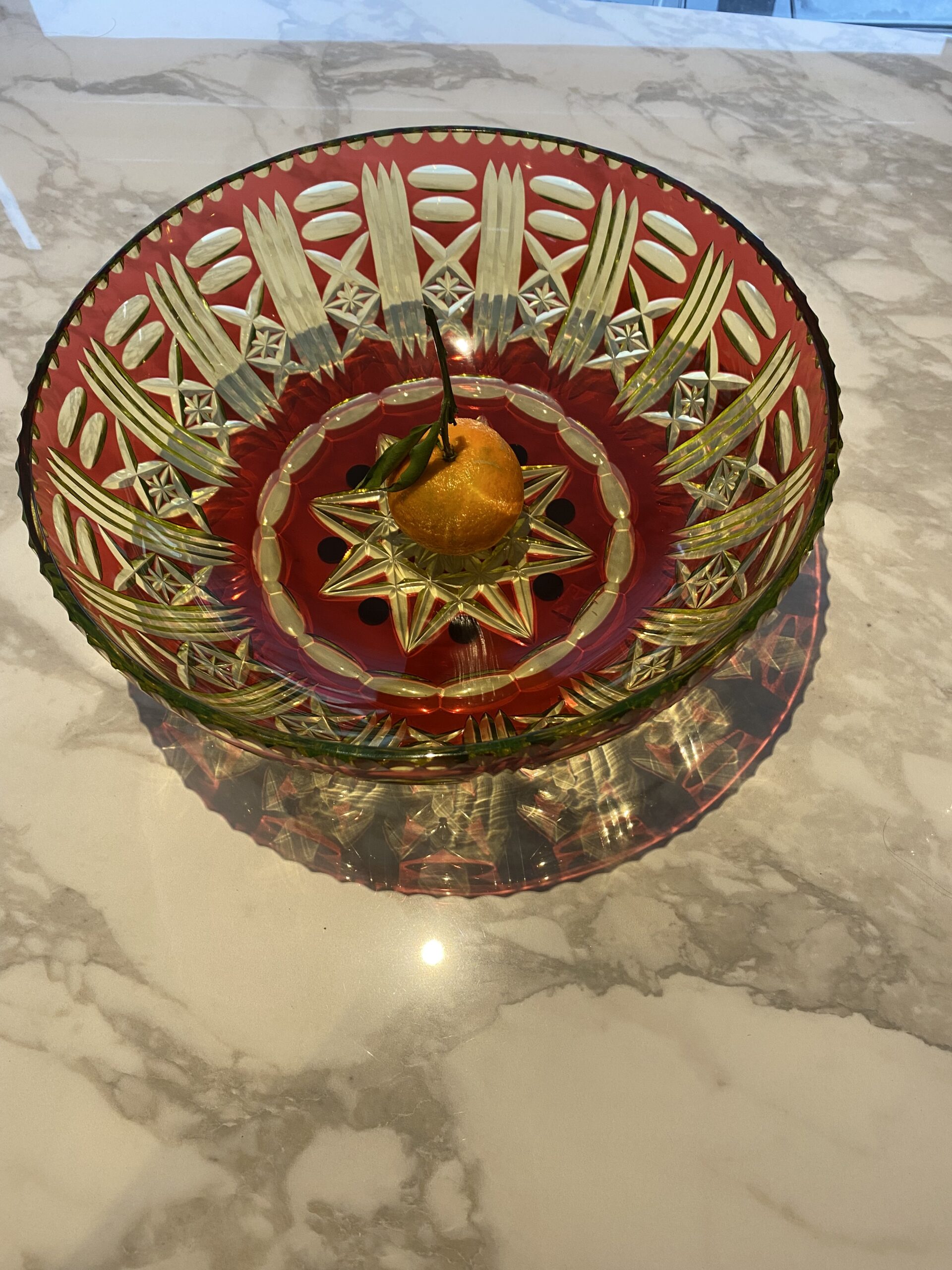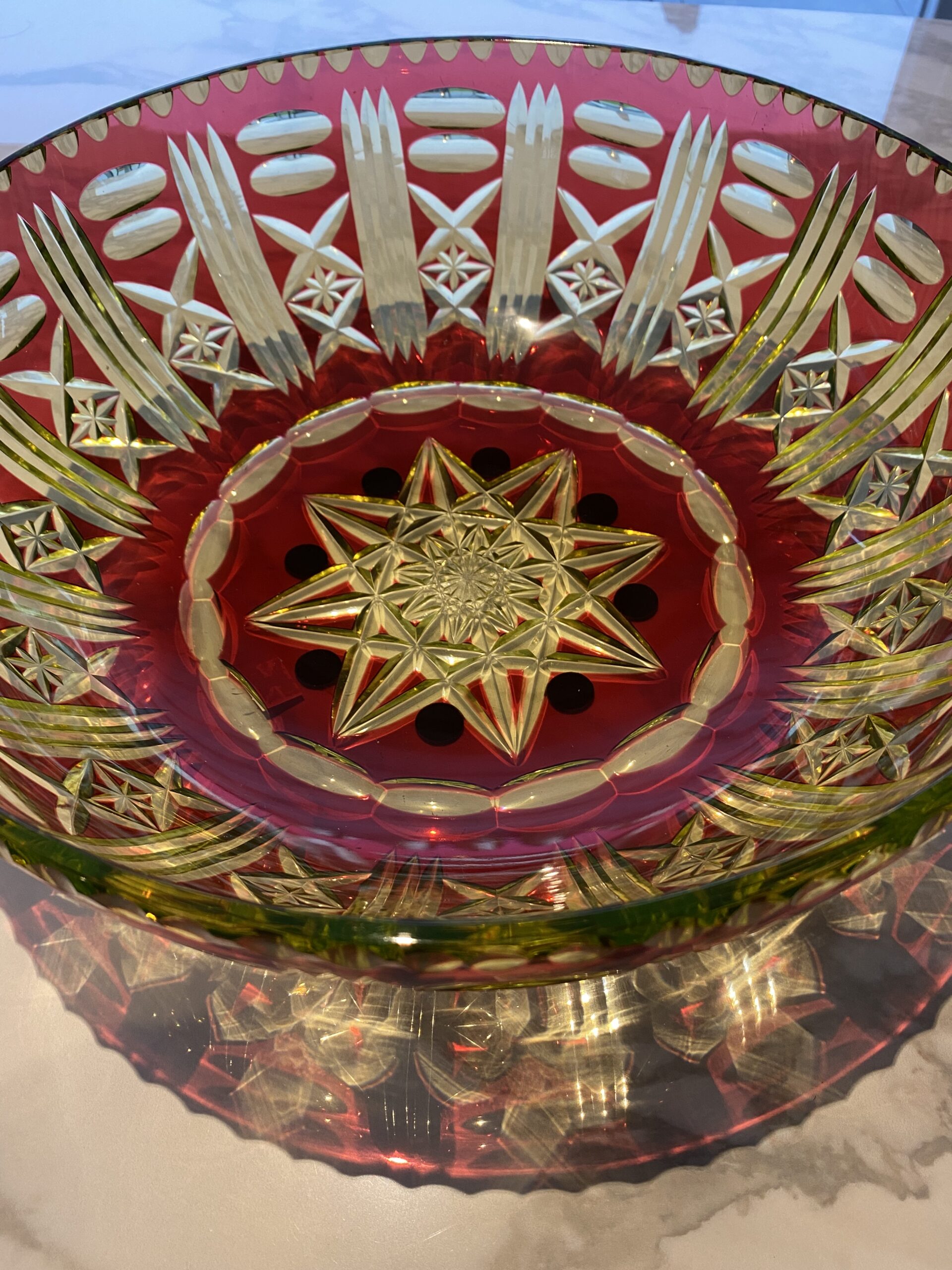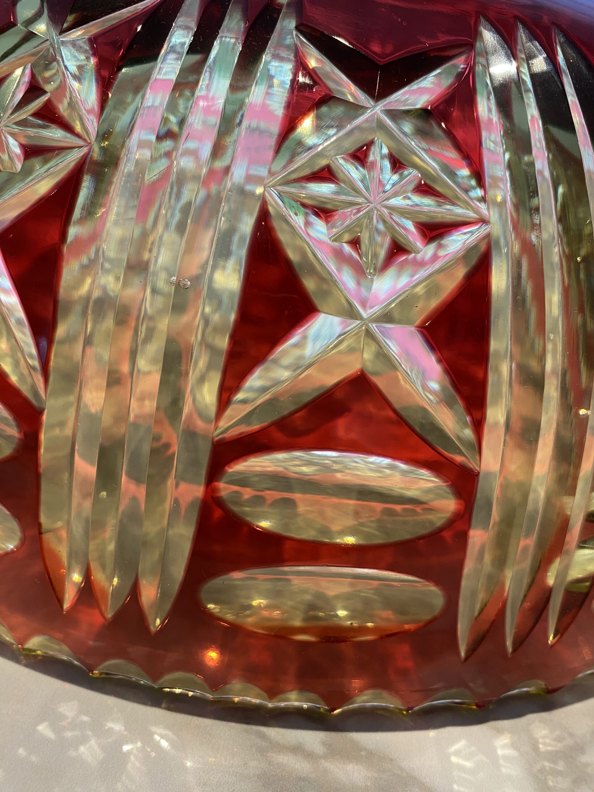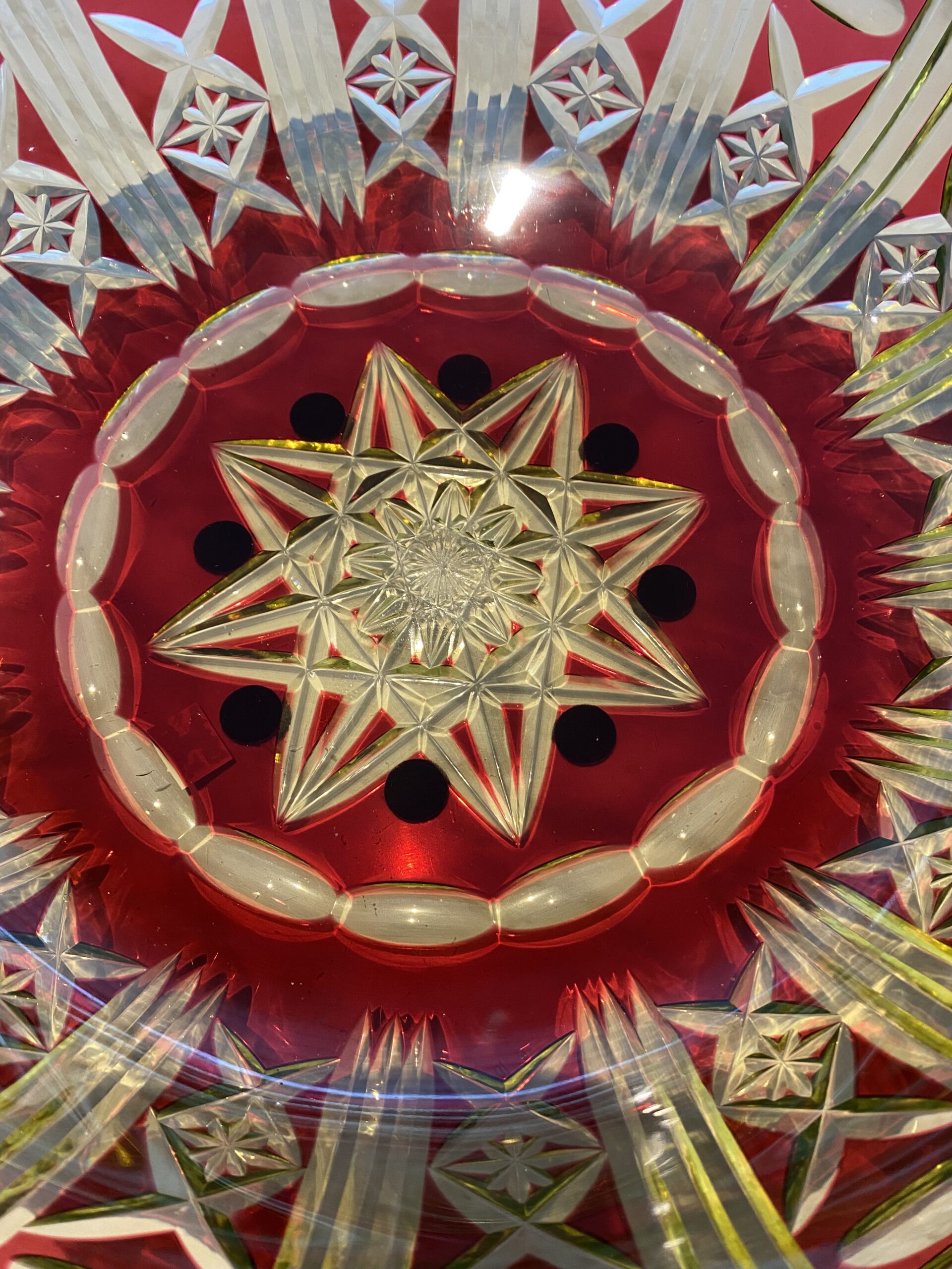 Le cristal est en urane, doublé rouge et taillé.