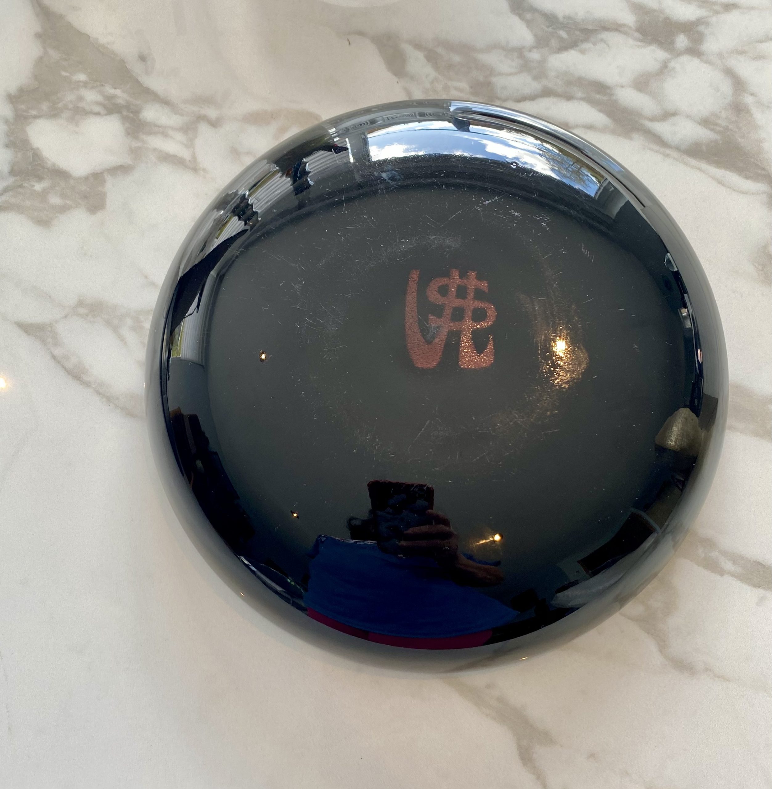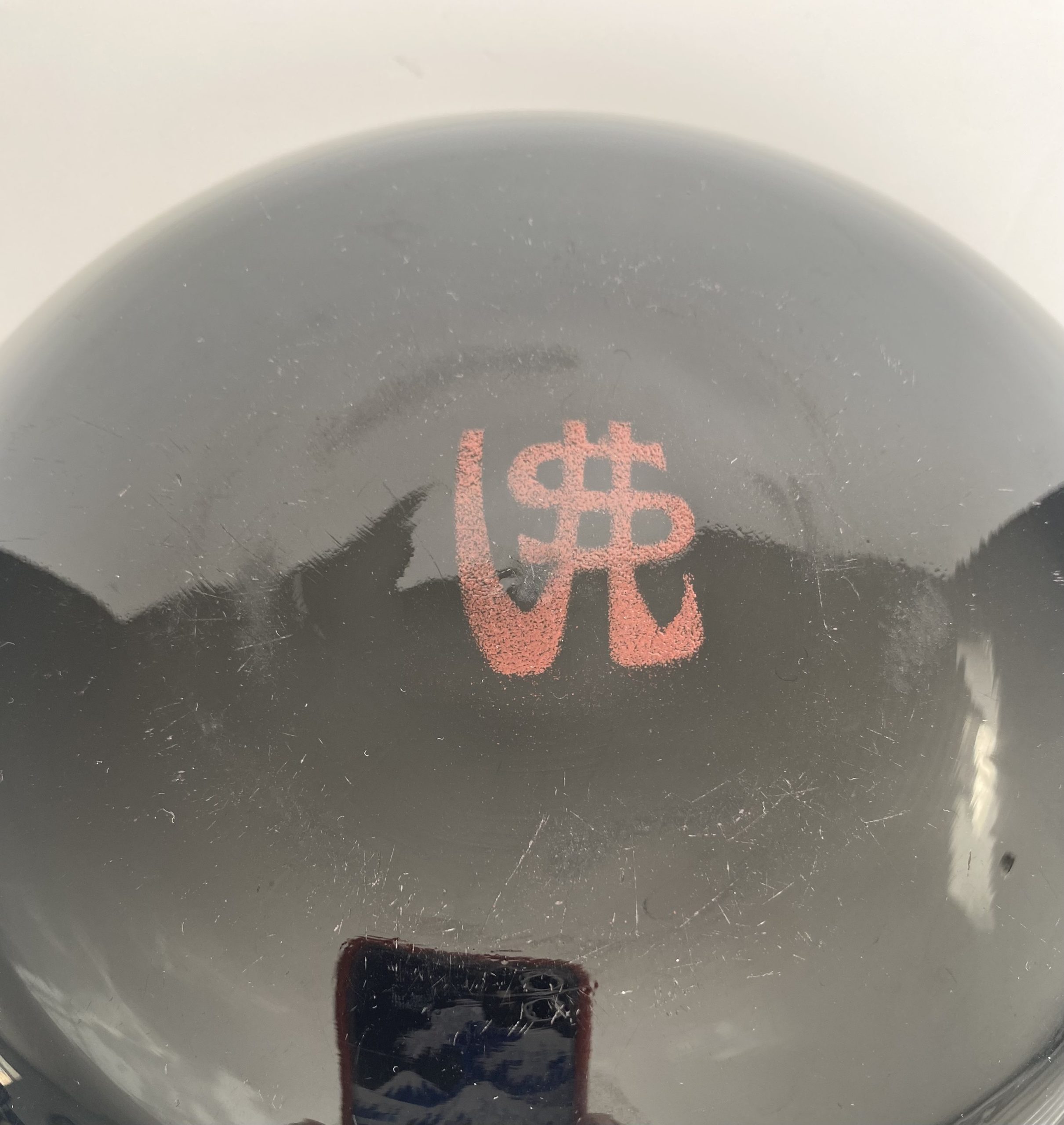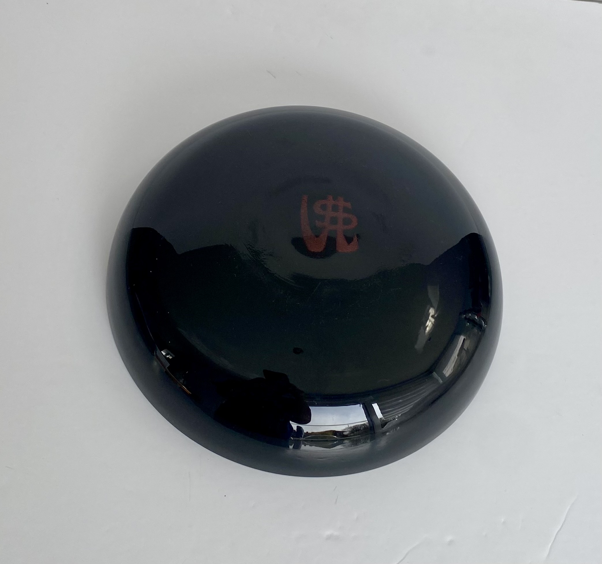 Coupe noire, signée au revers du sigle VSL, réalisé aux pigments de couleurs, pour la manufacture du Val-Saint-lambert à Jemeppe.