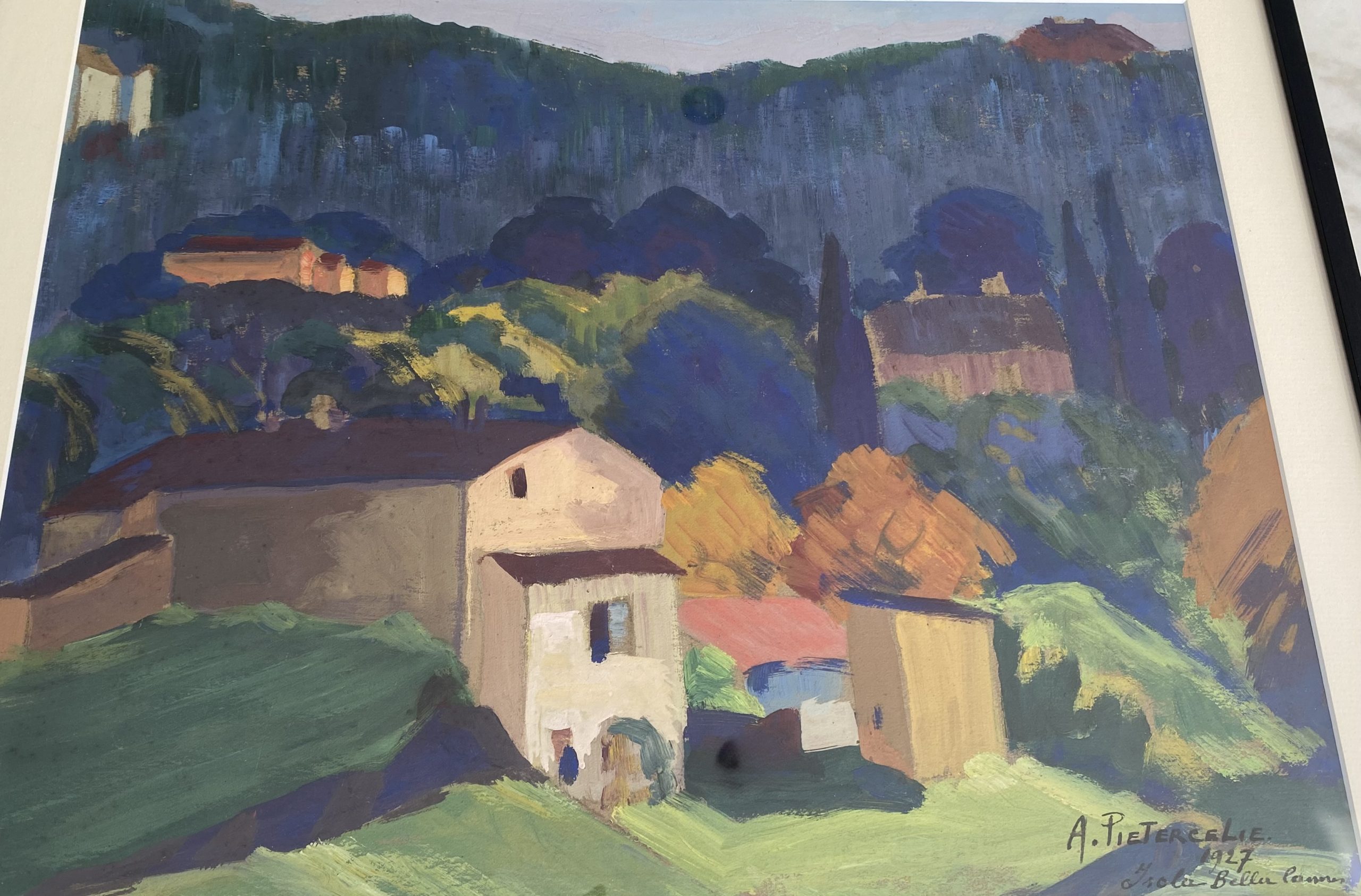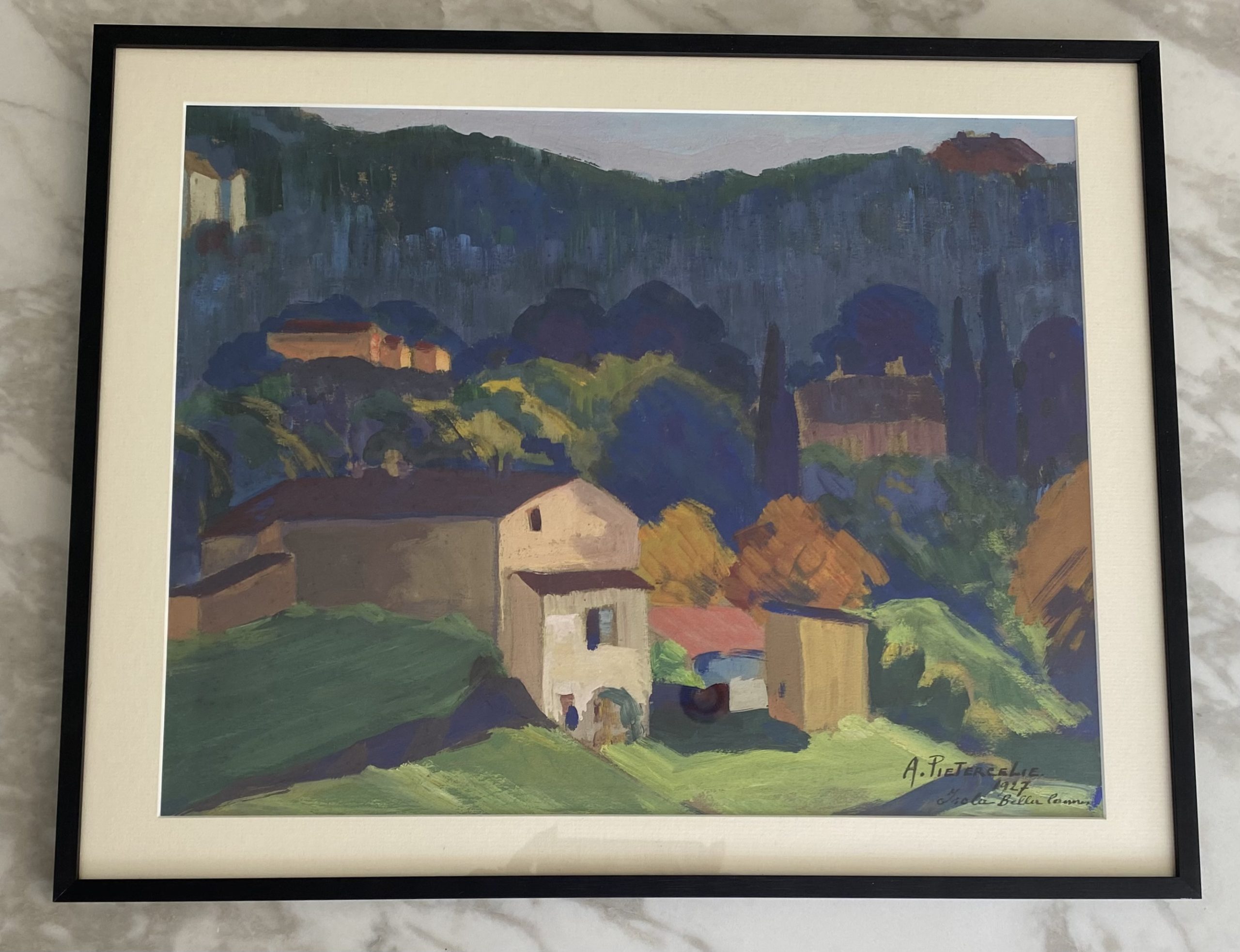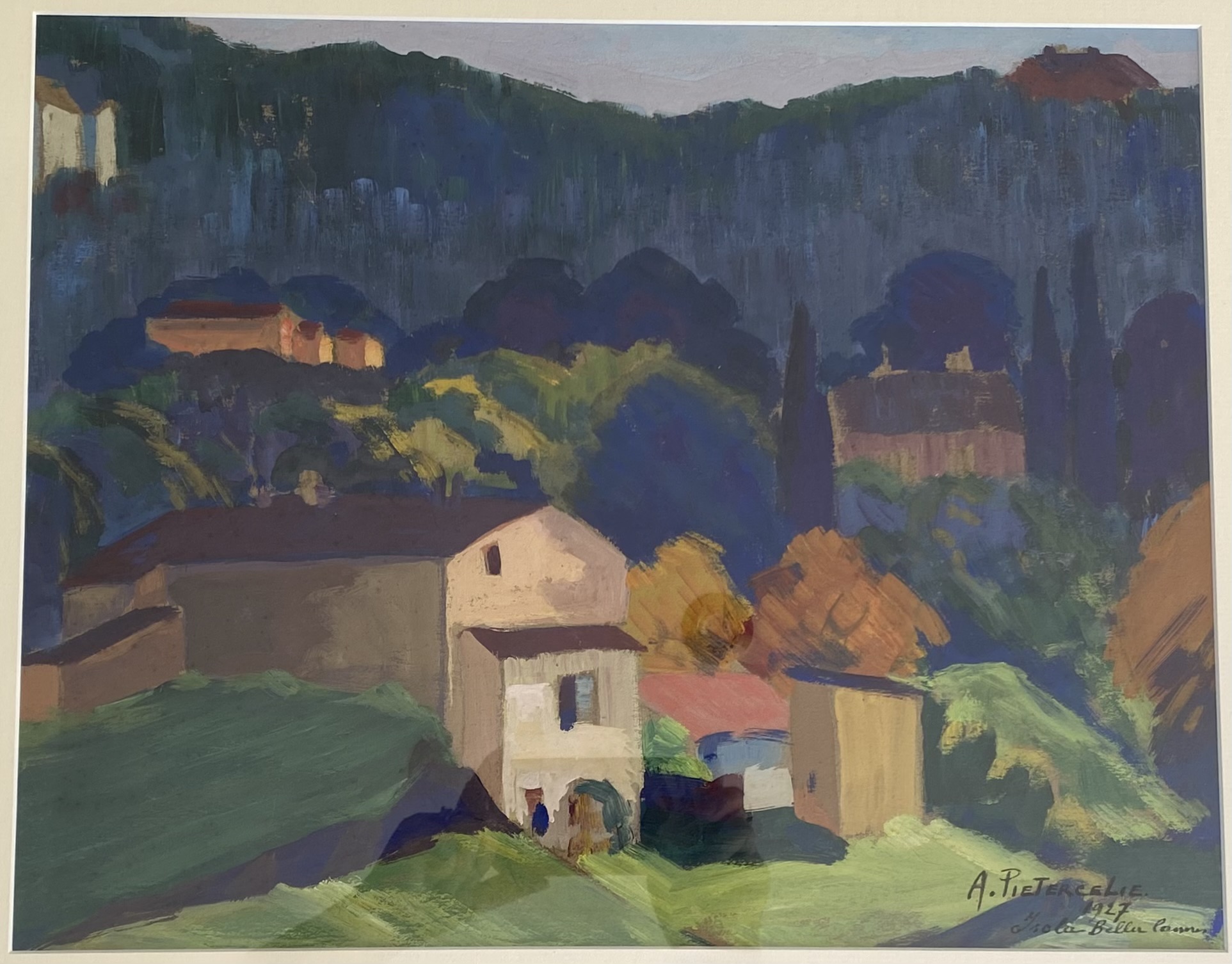 Gouache signée A. Pietercelie, et nommée “Isola Bella Cannes, 1927”.