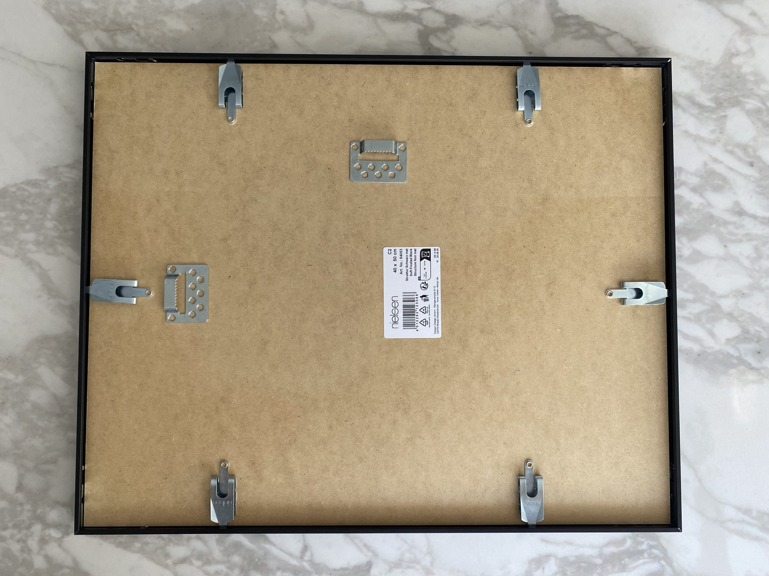 Encadré dans un cadre métallique, aux bords noirs, avec un passe-partout, sous verre.