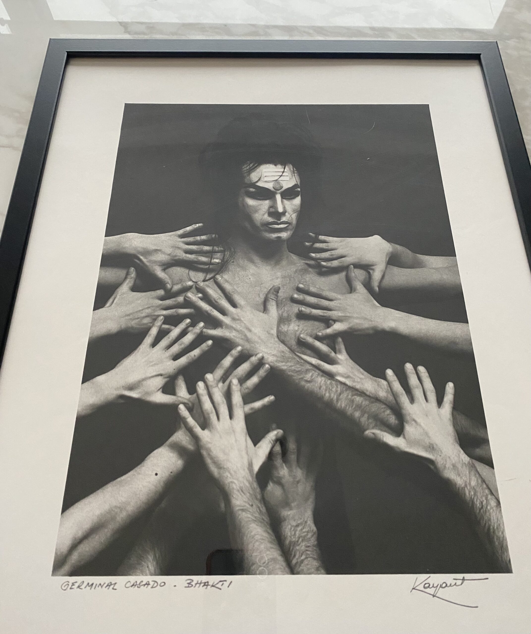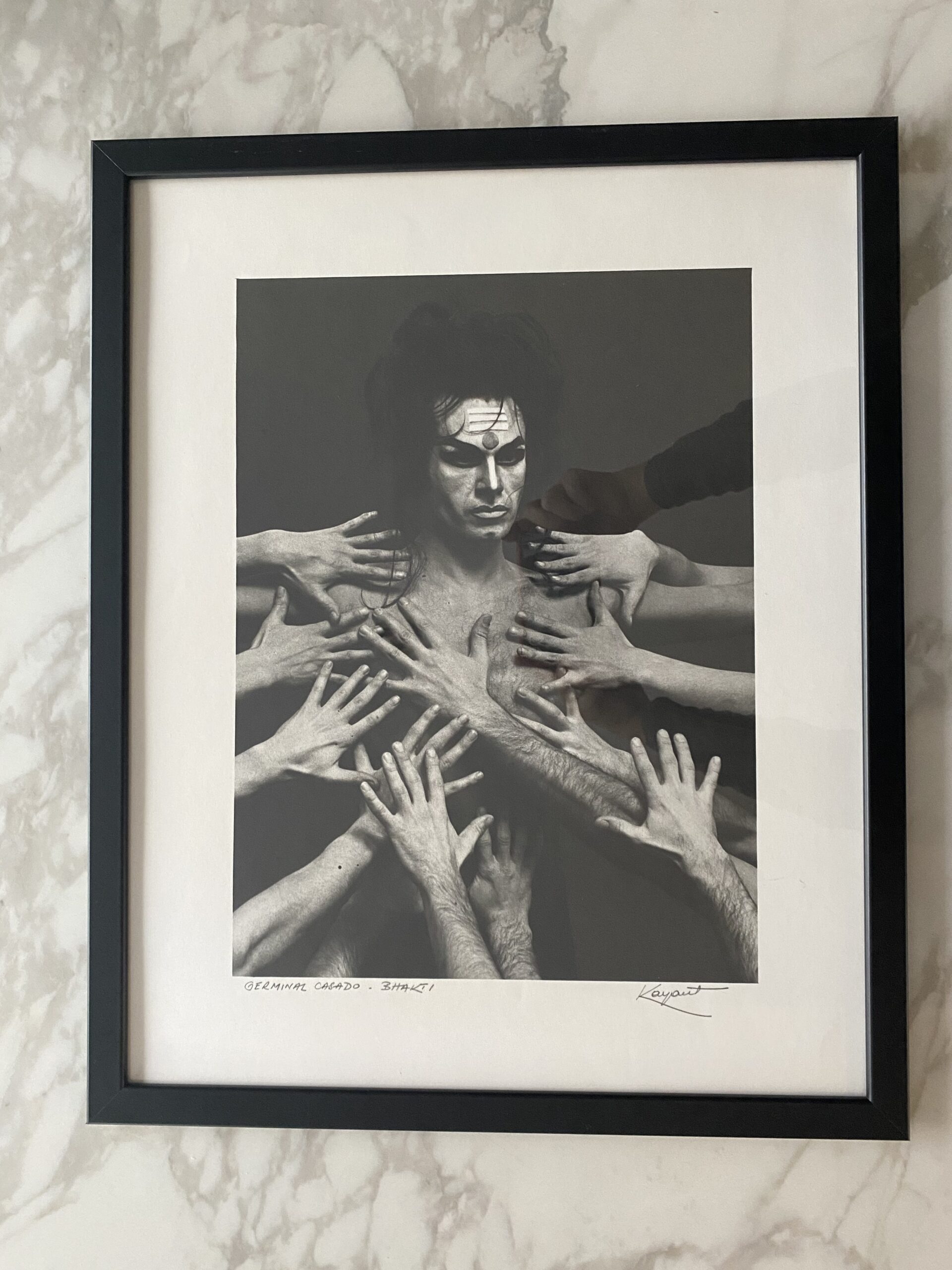 Photographie en noir et blanc de Germinal Casado (1934 – 2016) dans le ballet “Bakti”, signée Kayaert pour Robert Kayaert ( 1920 – 2007).