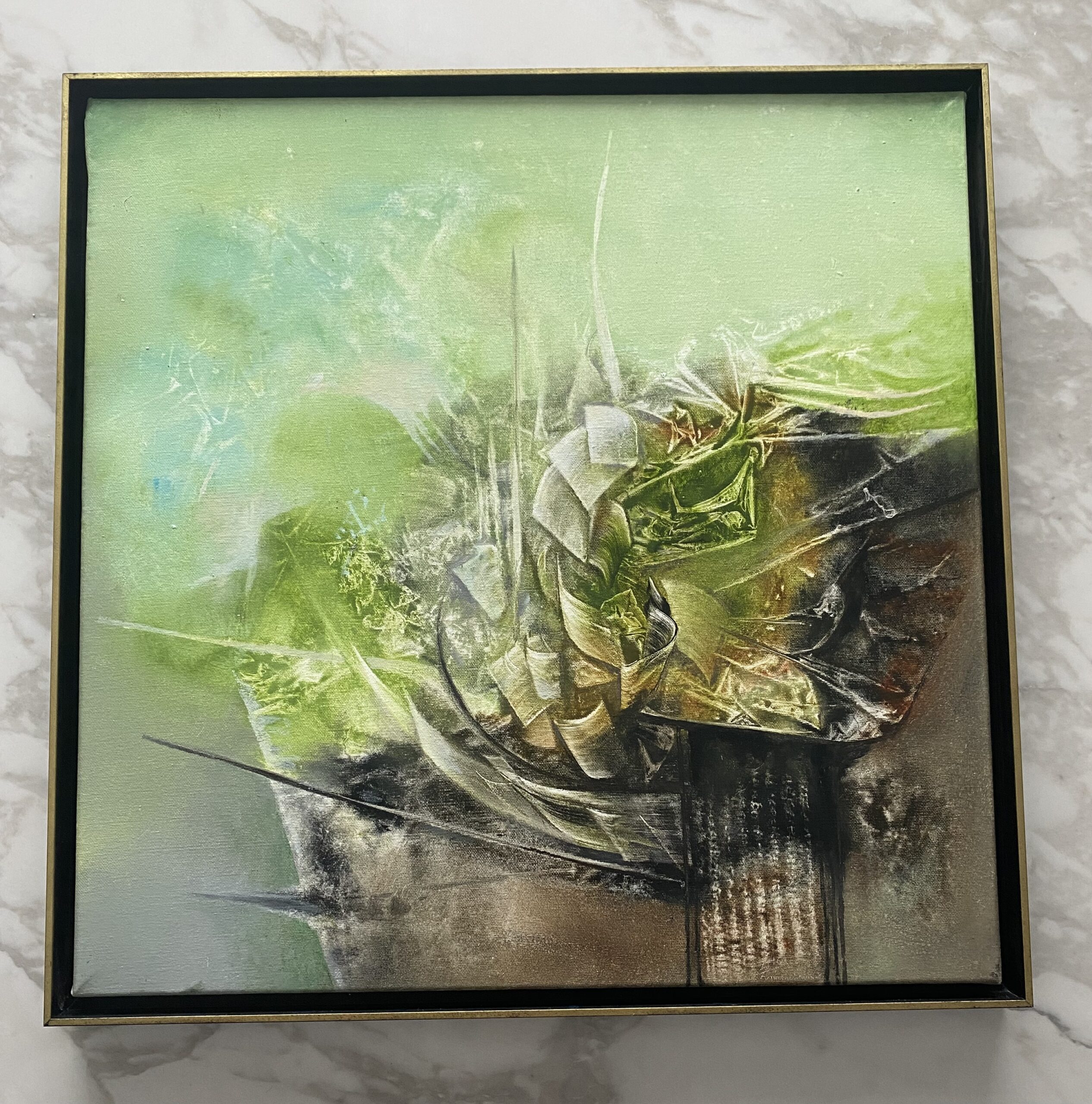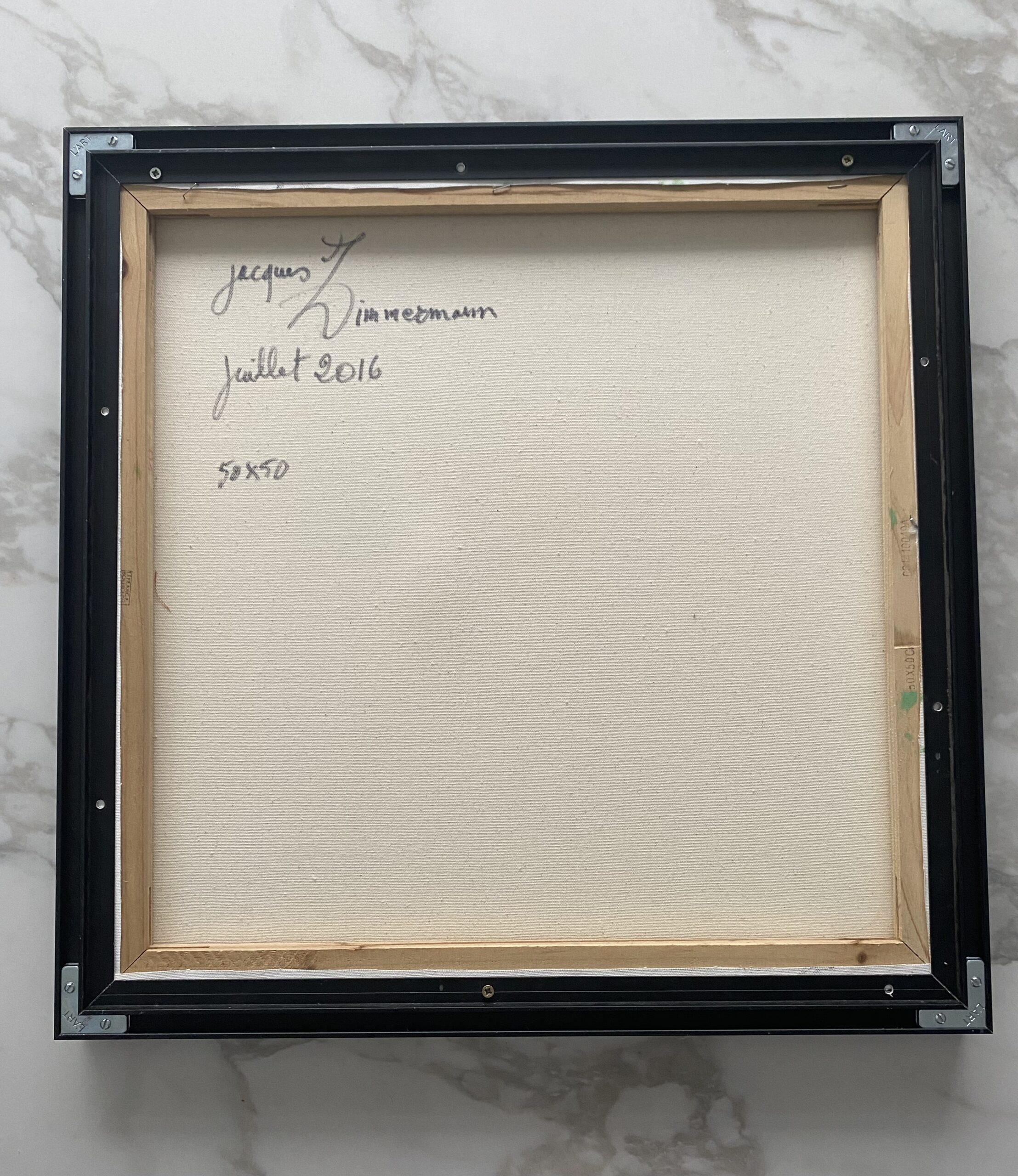 Huile sur toile abstraite du peintre belge Jacques Zimmermann. Signée de juillet 2016. Signature au recto et au verso de l’oeuvre