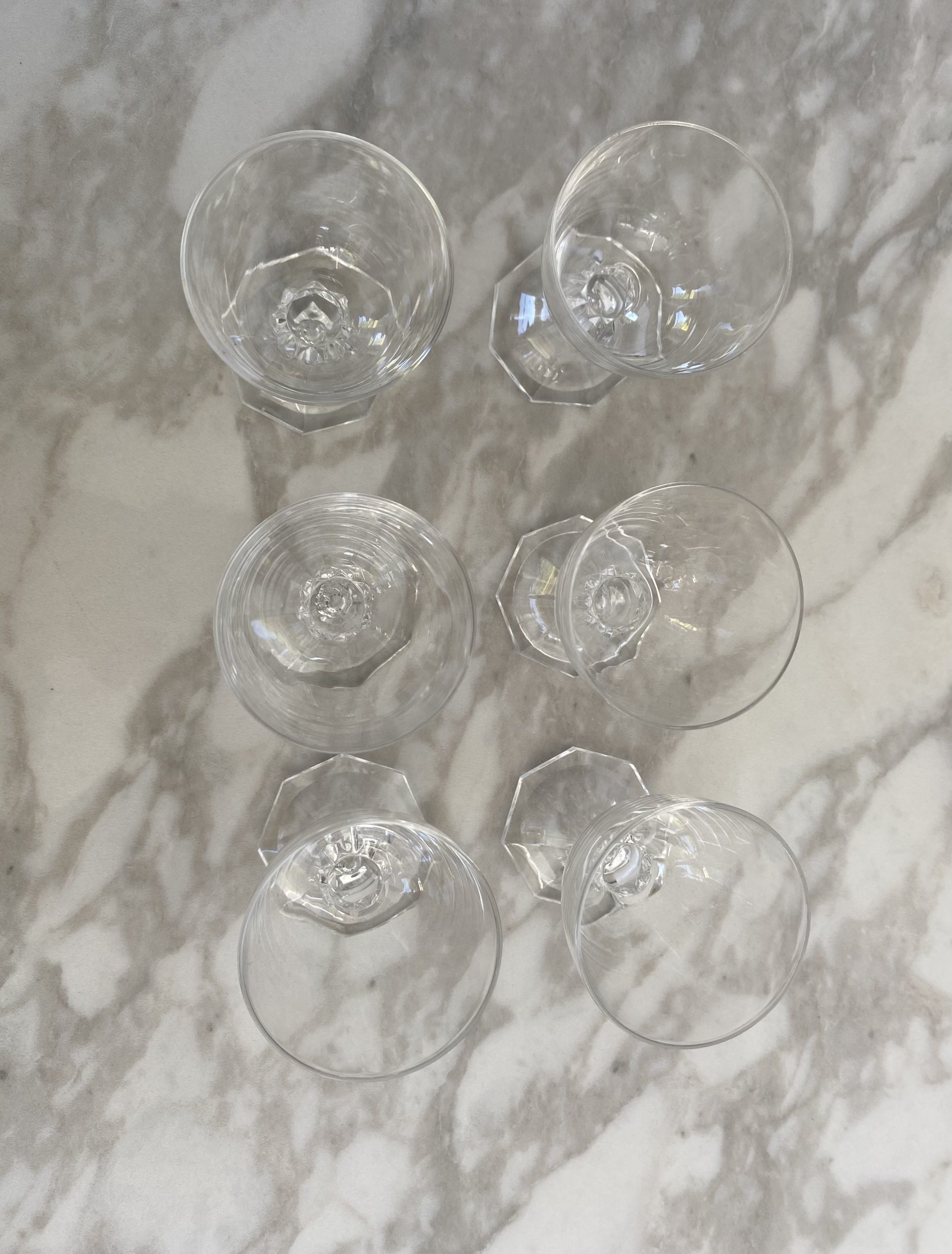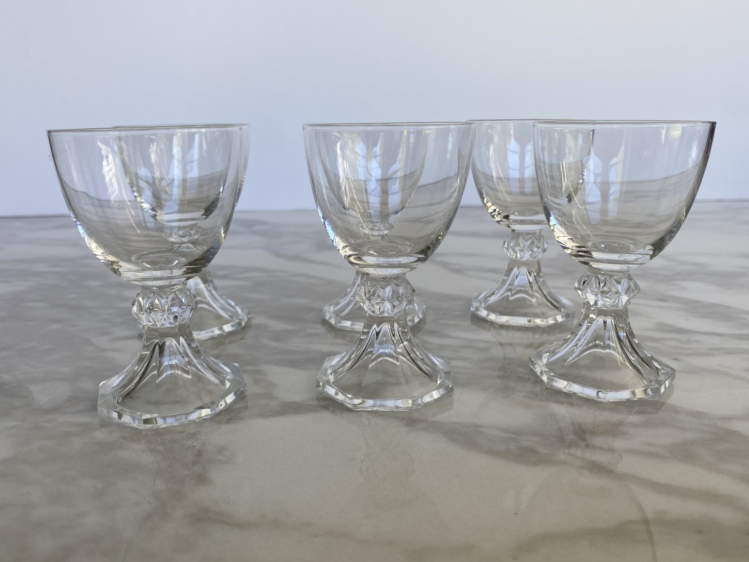 Ravissants verres à gouttes en cristal clair, modèle Yale, de la cristallerie du Val-Saint-Lambert.