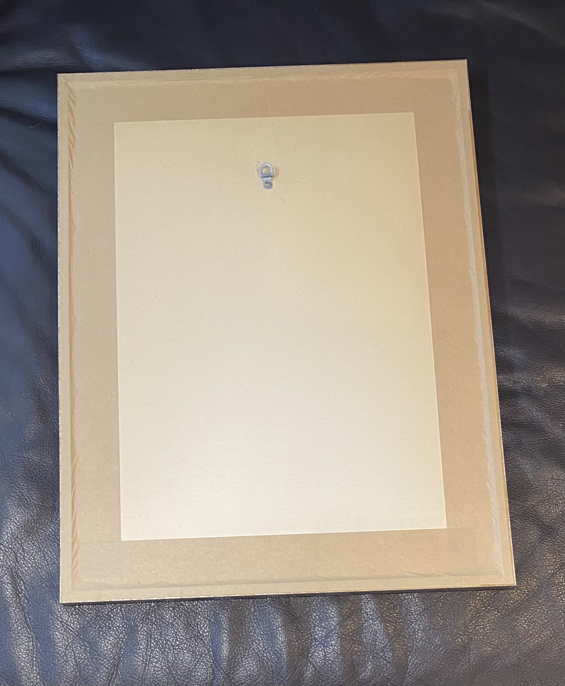 Encadré sous verre dans un cadre argenté.